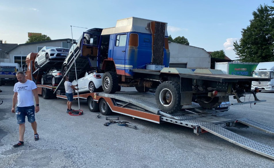 Nach gut einer Woche Fahrt brachte uns ein polnischer Spediteur unseren LKW bis vor die Haustür