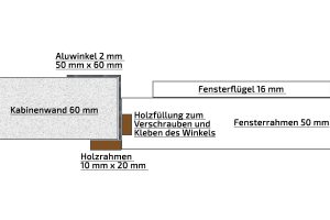 Ich baute also alles zusammen, justierte es und hatte auf einmal ein Fenster mit 50 mm Rahmentiefe, dass sich ausstellen ließ wie ein teures Expeditionsmobil Fenster.