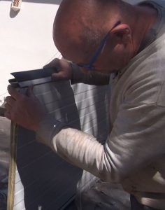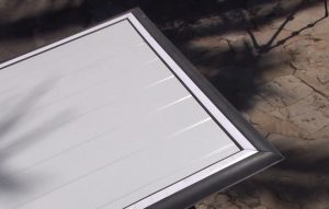 Dann noch die Profile kleben und schon ist die Tür fertig. Um die Profile während des Klebens in Position zu halten einfach einen langen Spanngurt drumherum spannen.