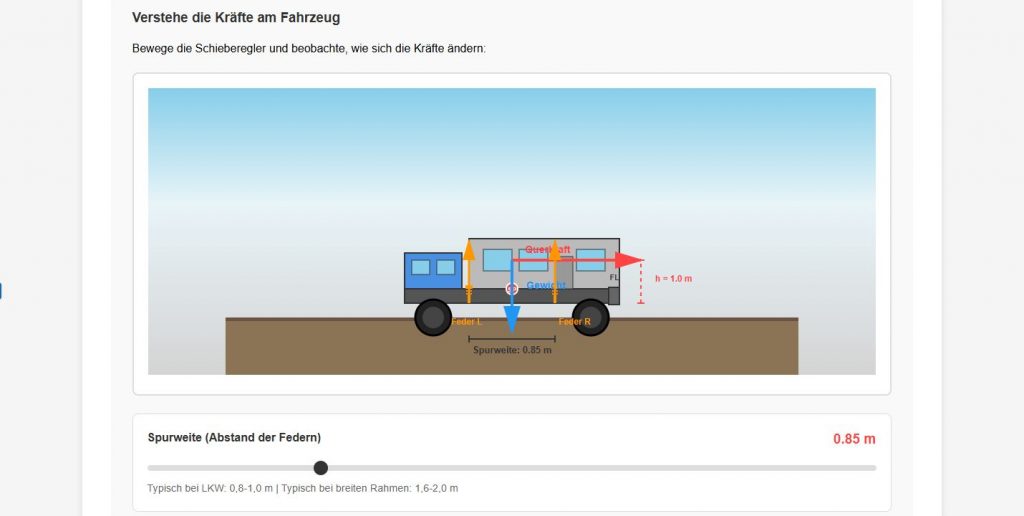 Formel: Zusatzlast = Kippmoment / Spurweite